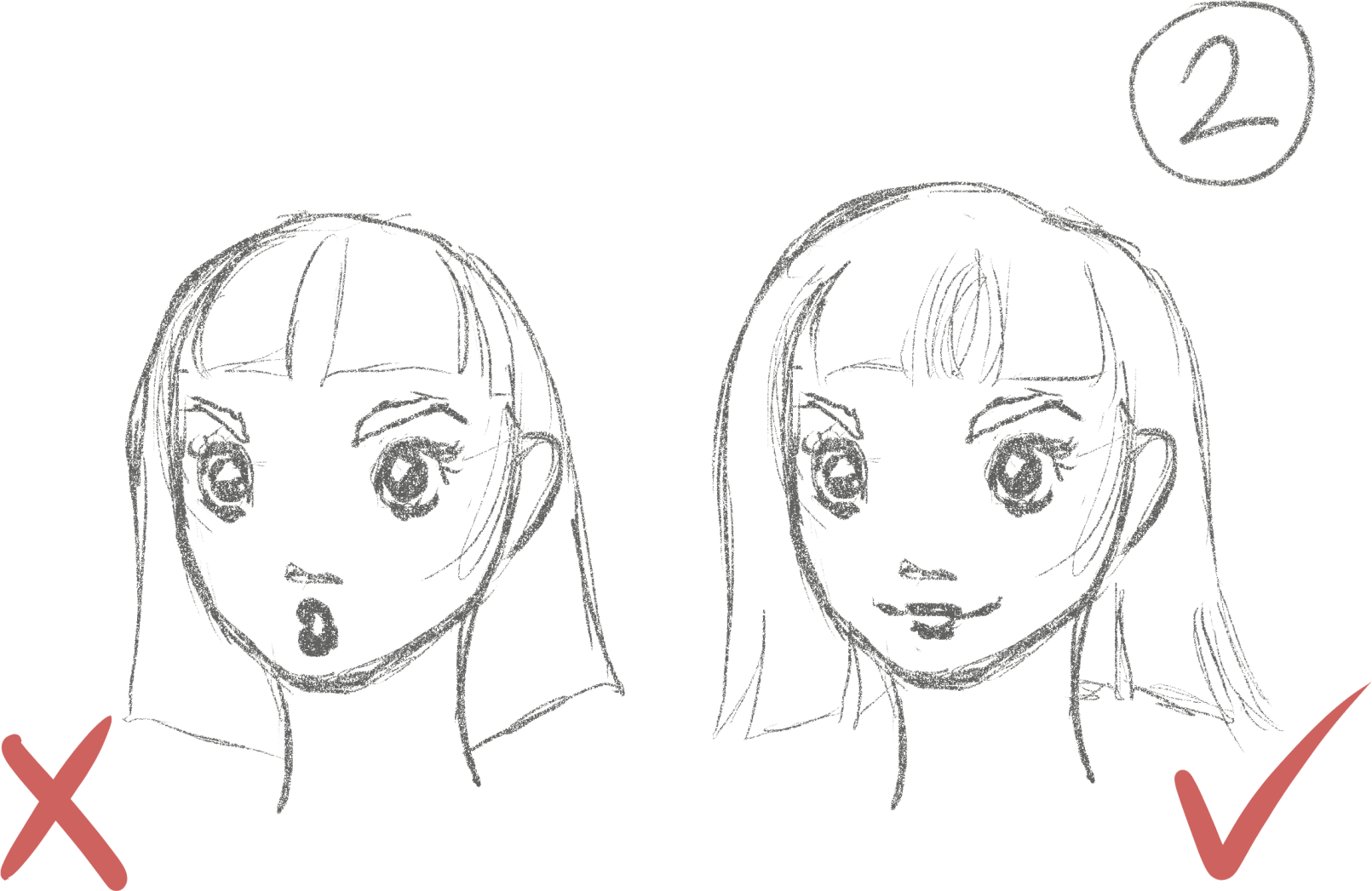 Although both characters can have long or short hair, we opted to sketch short hair for the boy anime and long hair for the .